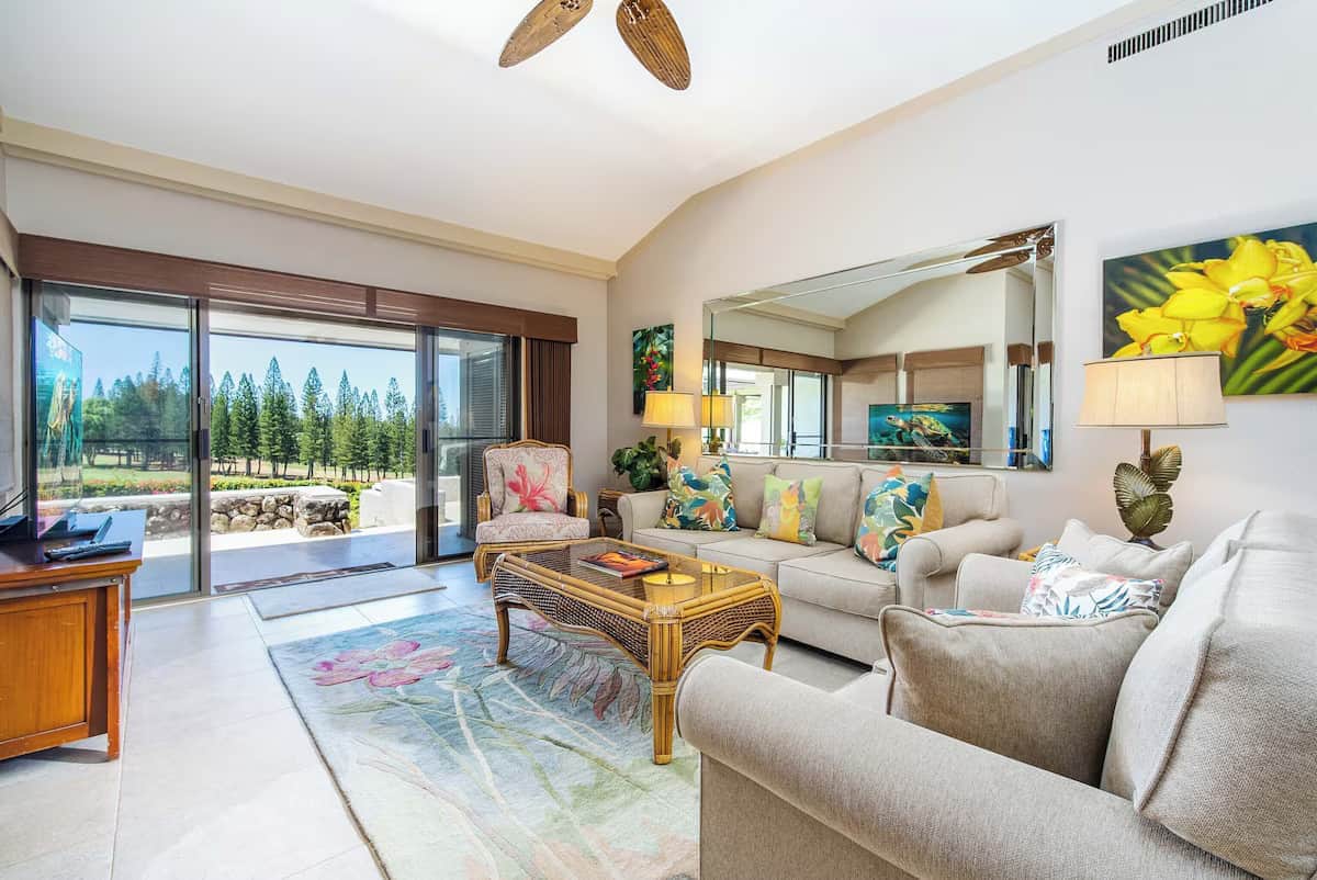 Relax on your private lanai overlooking the 10th fairway of the Kapalua Golf Resort, and in the winter, watch whales breach in the distance.